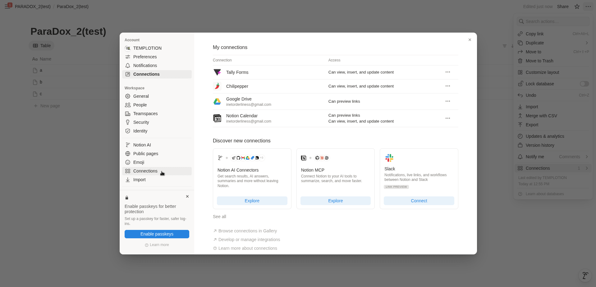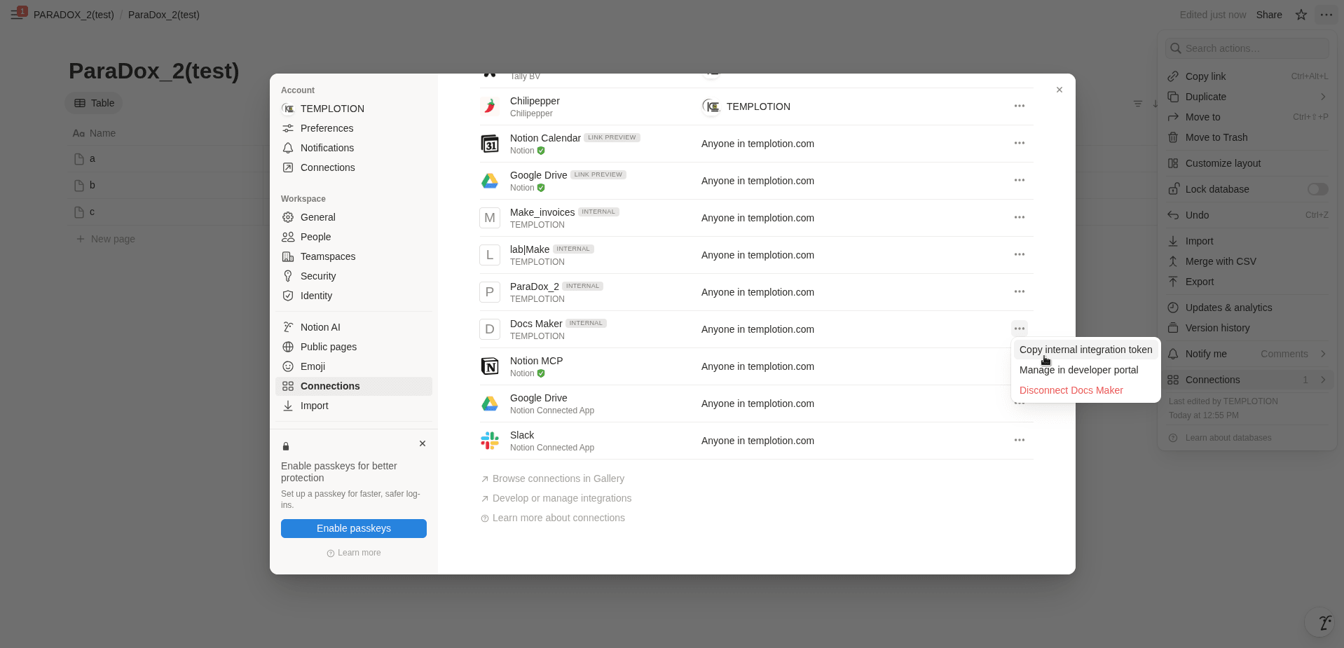 - Go to Connections, find this integration, copy the token usingCopy internal integration token, and paste it into the generator field.